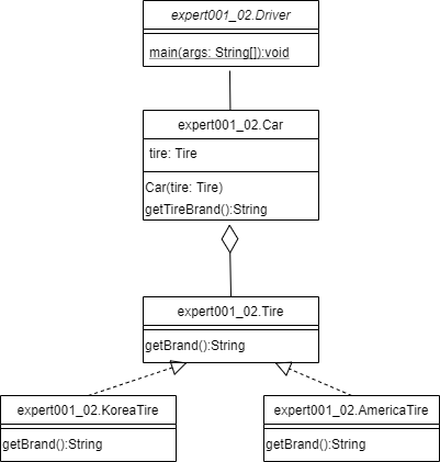 Car 생성자의 인자로 Tire가 들어감. 나머지는 동일