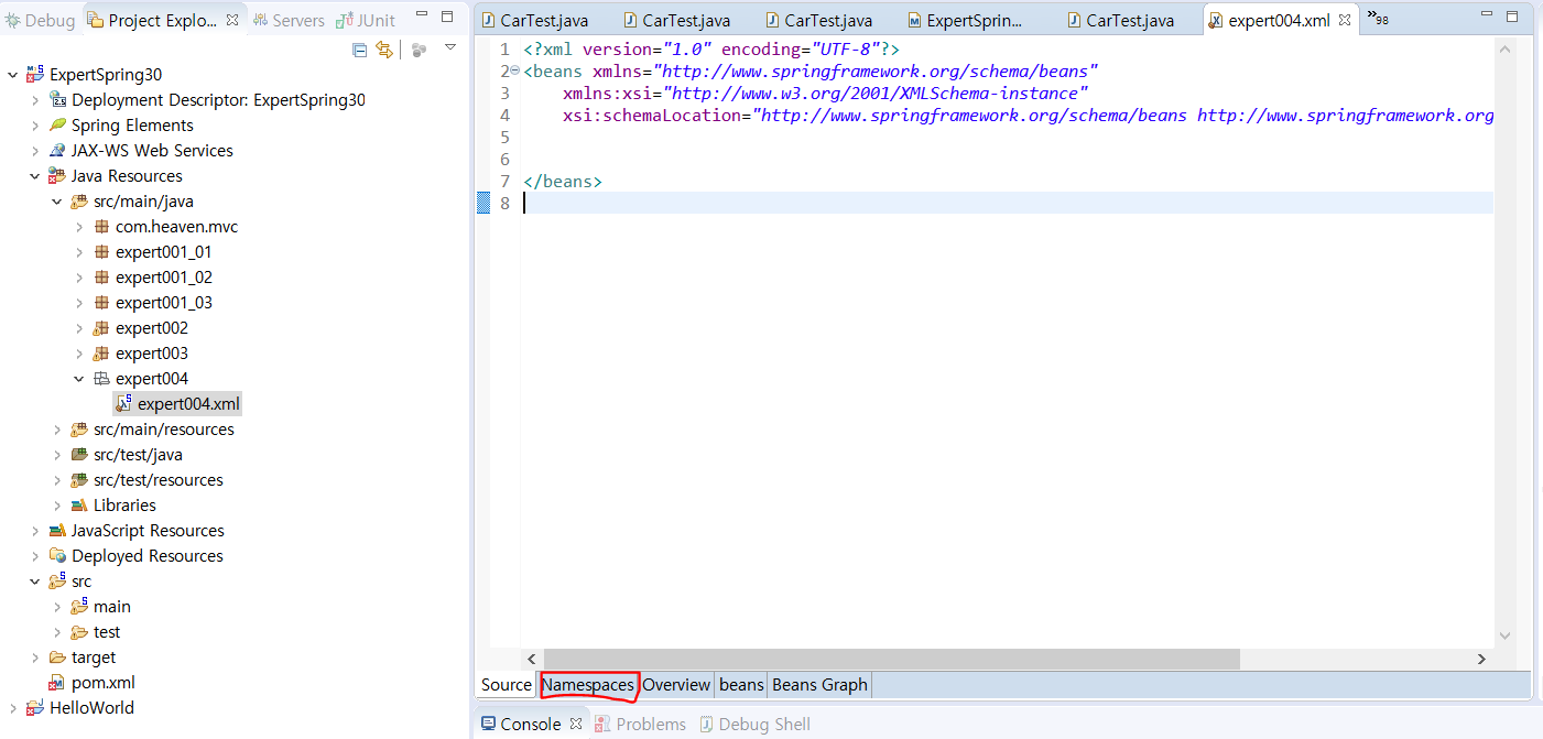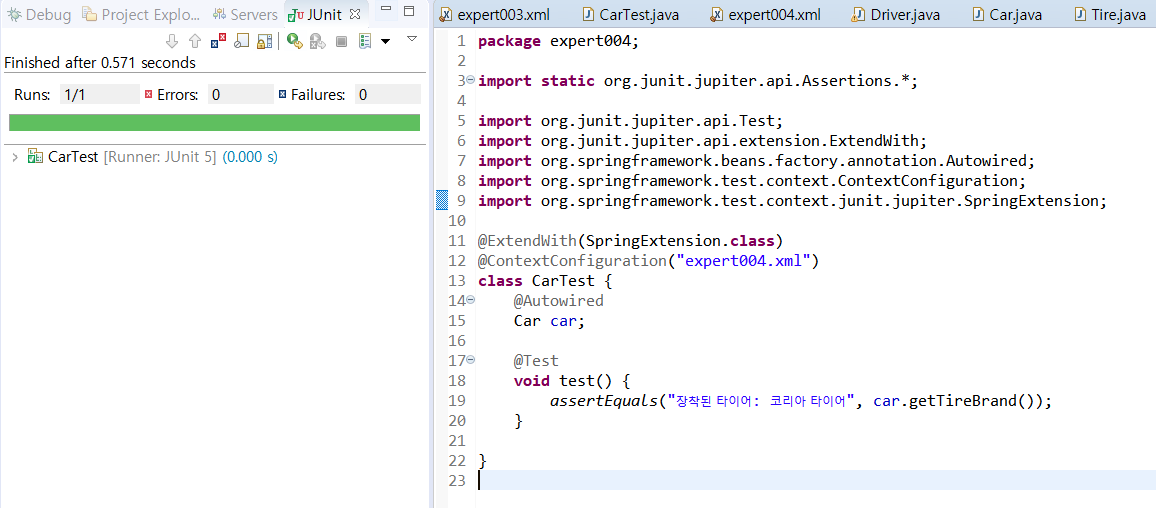 - expert004.xml(context:annotation-config 추가 및 Car Bean 수정)