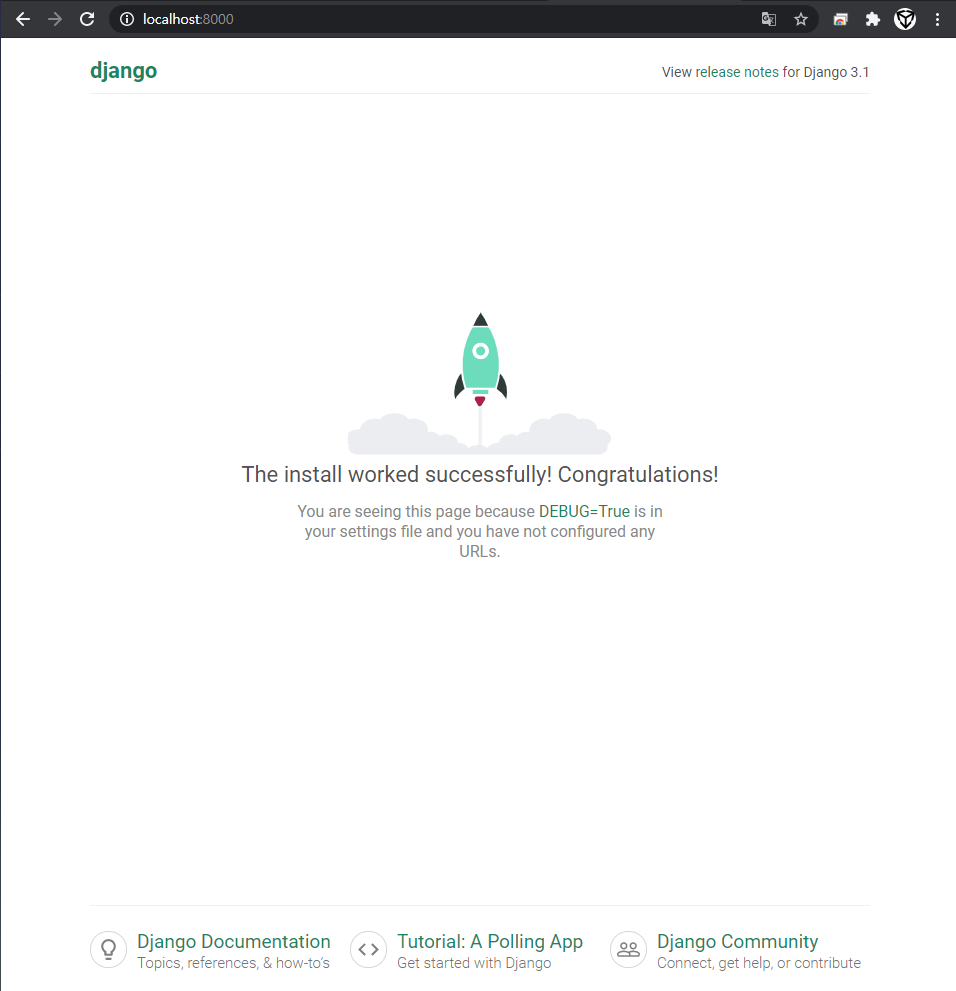 아래 명령어 실행 후, localhost:8000으로 접속했을 때, 아래처럼 접속이 되면 성공이다.