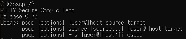 위와 같이 뜨면, pscp를 이용할 준비가 끝났다.