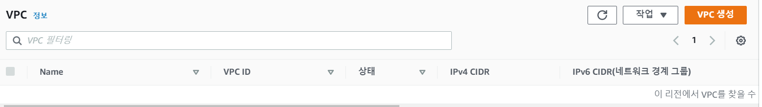 VPC 서비스로 이동 후, VPC 생성 클릭
